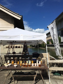 山本爷爷除了自己平时有开设绘画班之外,就是带着自己满山满谷的作品跑市集。他的作品常常是京都的风景名胜,或是转角的一景季节风物诗。他说,灵感来的时候,15-30分钟就可以画完一张明信片。一小时约可完成两张,以时薪来算的话,一张500日币不算太贵(笑)赞叹他永不枯竭的艺术创作力,忍不住买了两张明信片,山本爷爷很热情,还送我一只小发夹当赠礼,感谢我欣赏他的画作!除了东寺市集之外,也能在北野天满宫市集看见他的身影喔!